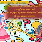 Добрый день, дорогие друзья! И снова с вами детско-семейная рубрика «Загадайка». Получите ответ к четвертому заданию (Мальвина; Тетушка Тортила подарила ...